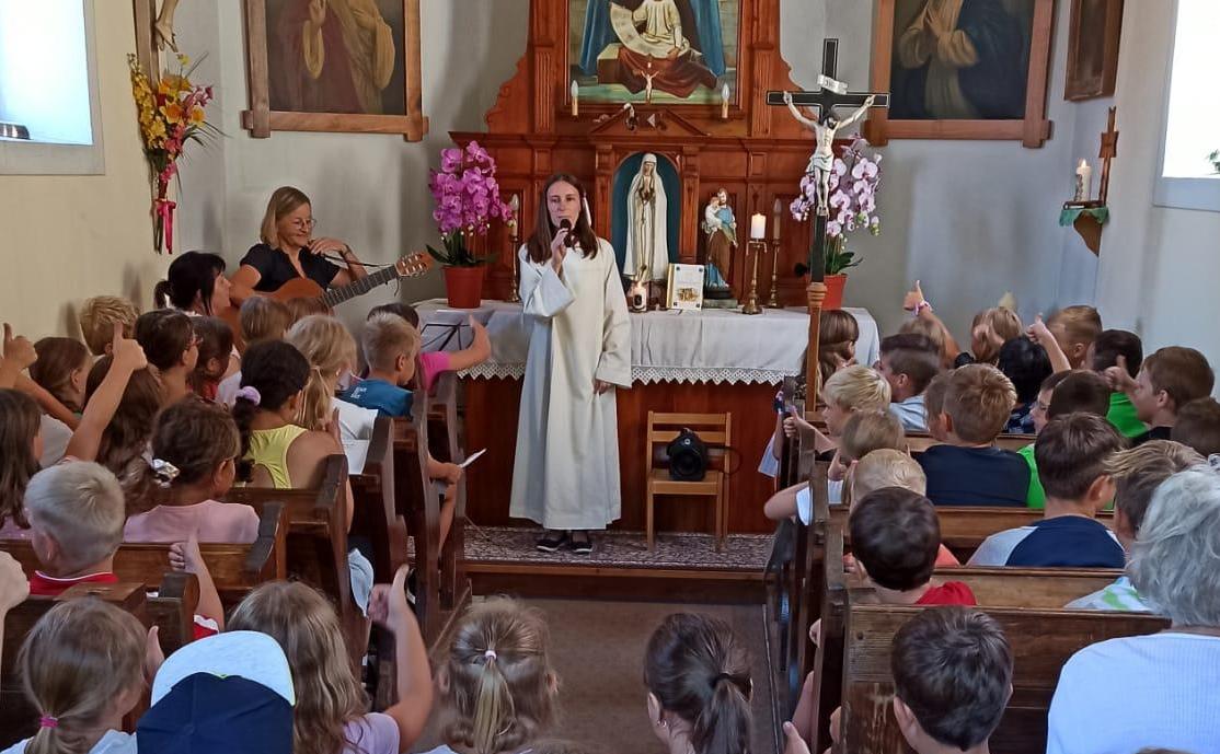 Am 06.07.2022 feierten die Kinder gemeinsam mit den Lehrern den Abschlussgottesdienst in der Kapelle in Gersdorfberg. Bei diesem Gottesdienst verabschiedeten wir auch unsere langjährige Religionslehrerin Maria Seidler, welche mit Ende des Schuljahres die Pension angetreten hat. Der Elternverein organisierte für alle Schüler und Lehrer eine gemeinsame Jause. Ein großes Dankeschön geht hier speziell an Familie Ludwig, Christian Krenn und Familie Richard Krenn.